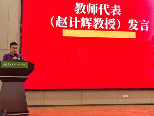 赵计辉教授作为教师代表发言,他向大家分享了四点感悟:快速适应大学生活,积极融入大学学习,勇于迎接困难挑战,认真思考个人发展与国家发展、内在与外在、现在与未来的关系。他强调明天的成功需要今天的努力,希望同学们能建立深厚的友谊,珍惜大学友情,祝愿大家在中大度过充实、快乐、成功且有意义的大学时光。