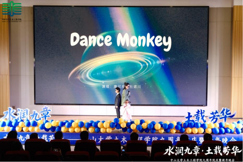 唐可欣副教授一家献上活力十足的英文歌曲《Dance Monkey》,舞台表现力十足;罗威老师则以激昂的《Don't Bring Me Down》点燃全场,自信风采与音乐感染力交相辉映。