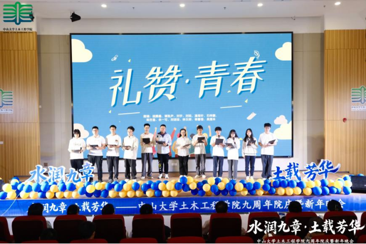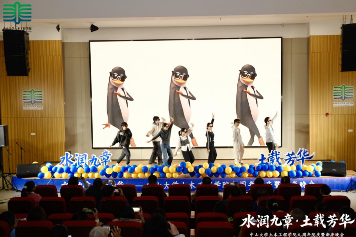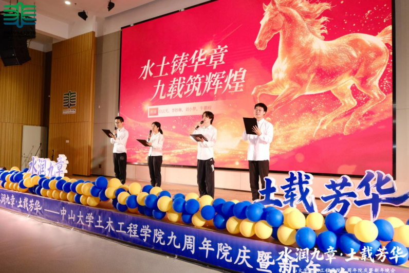 诗朗诵《九载铸华章,同心筑辉煌》将晚会气氛推向高潮。四位学子以声音为锤、以情感为火,将九年岁月锻造成铿锵诗行。九年来,正是在学院党委有力领导下、全院师生员工凝心聚力下,每一次思想的碰撞、每一份成果的积累,共同熔铸了土木大家庭的精神丰碑。