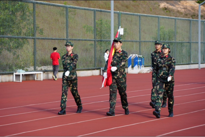 入场式开始,国旗班4位2025级同学身姿挺拔,眼神坚定,他们迈着整齐划一的步伐走过主席台。本科生各班方阵、研究生代表方阵依次在运动员进行曲中入场。当国歌音乐响起,全体师生面向冉冉升起的国旗庄严肃立,行注目礼,齐唱国歌。